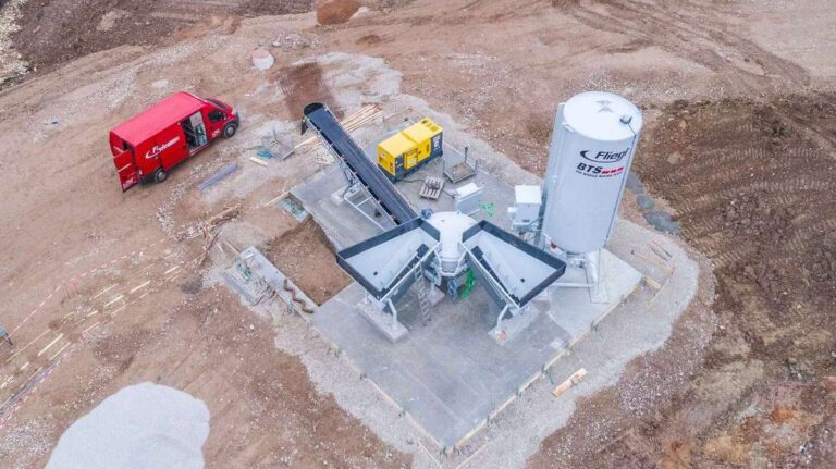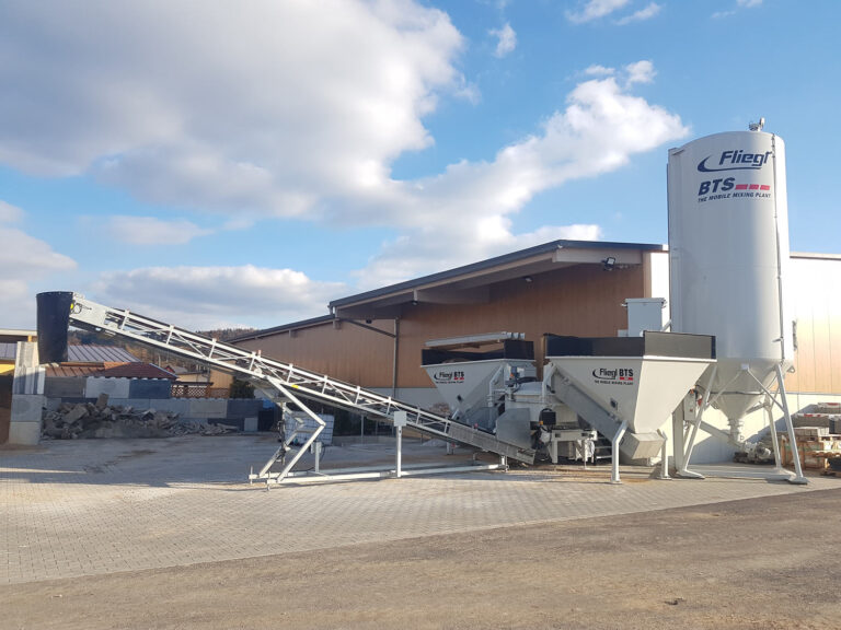 Die entsprechende Betonsorte wird im Mischmodul der Anlage vollautomatisch gemischt.