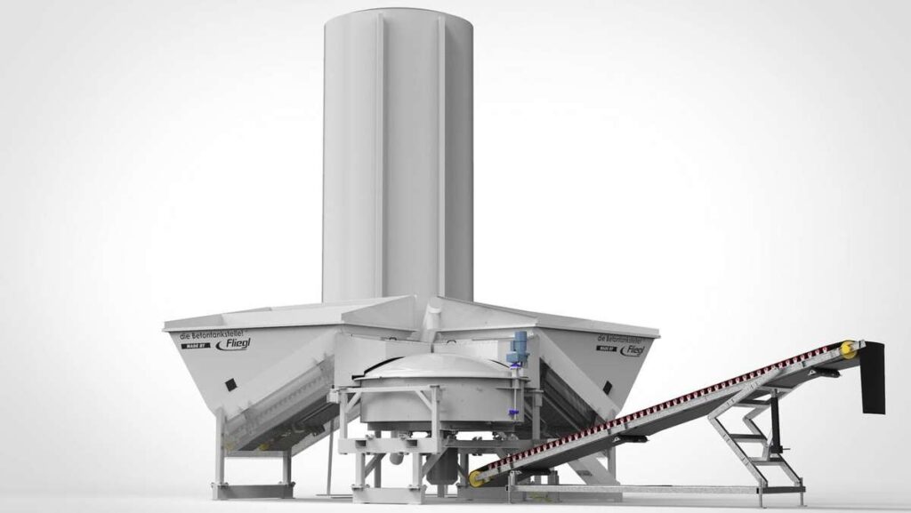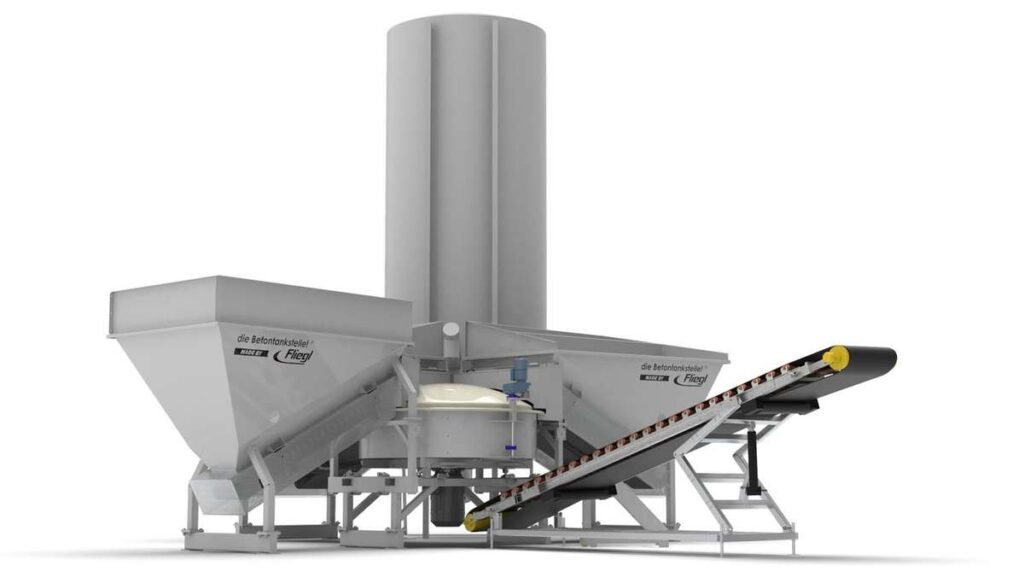 Die entsprechende Betonsorte wird im Mischmodul der Anlage vollautomatisch gemischt.