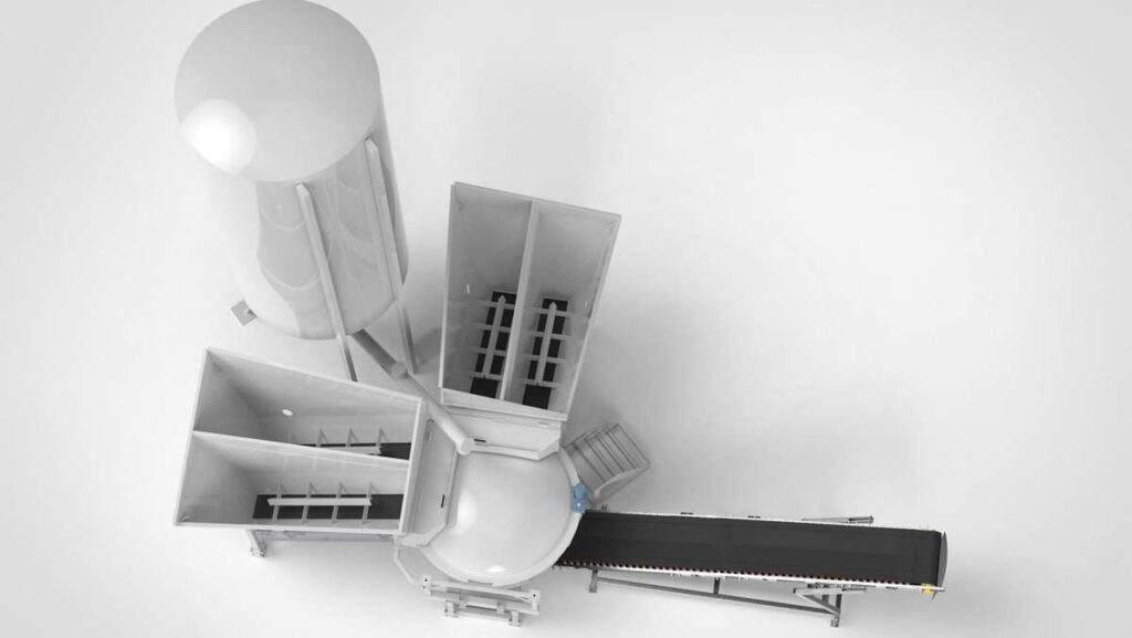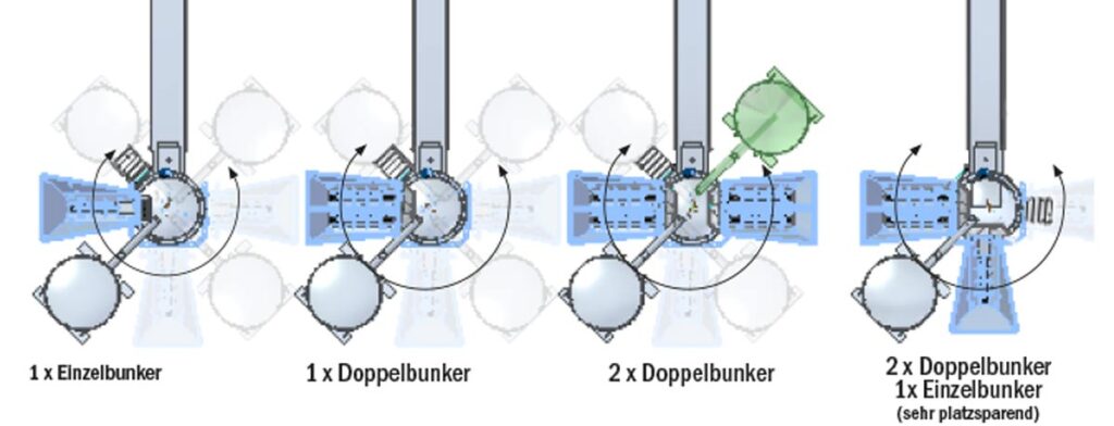 Sehr niedrige Beladekante der Vorratsbunker Einfüllhöhe ca. 2.600 mm