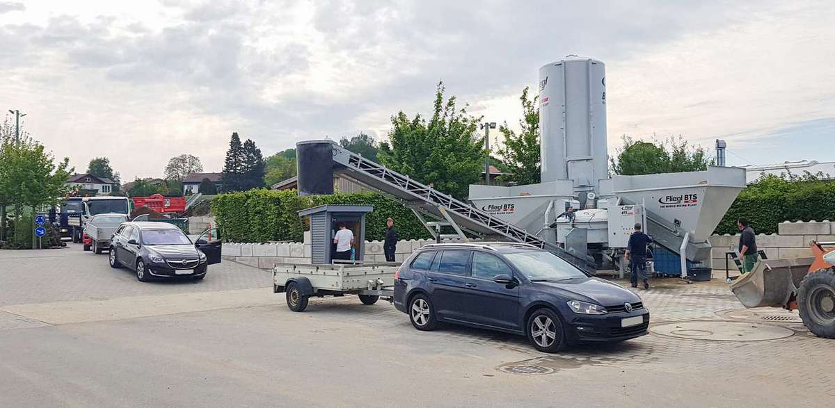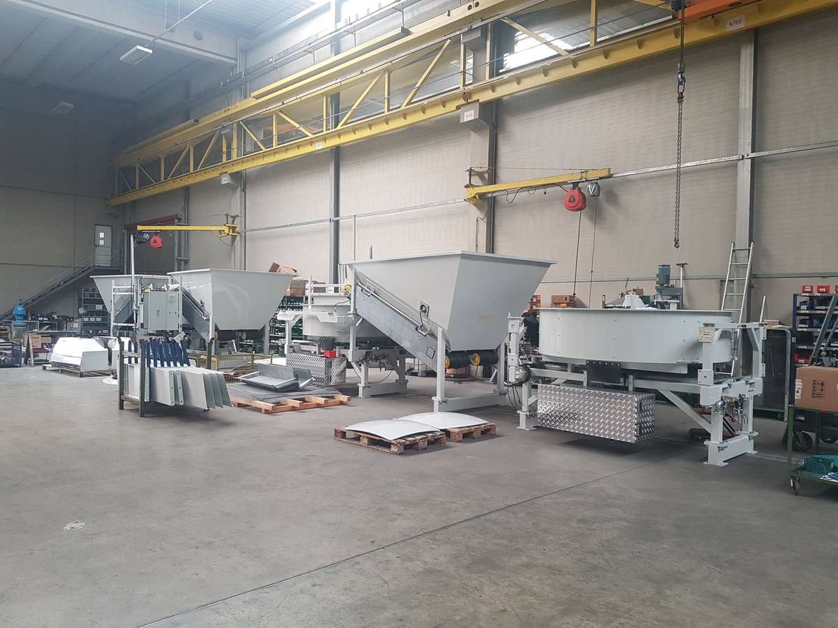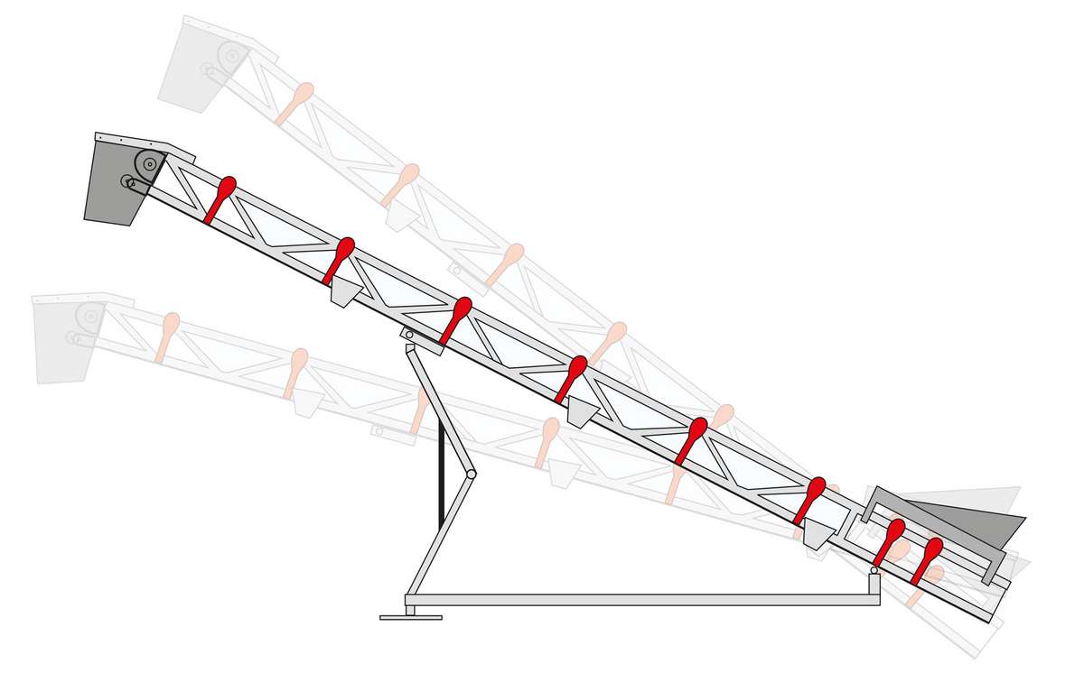 Flache Bandeinstellung ermöglicht das Verladen von flüssigem Beton in F3/F4 Konsistenz z.B. bei Betonlegosteine.