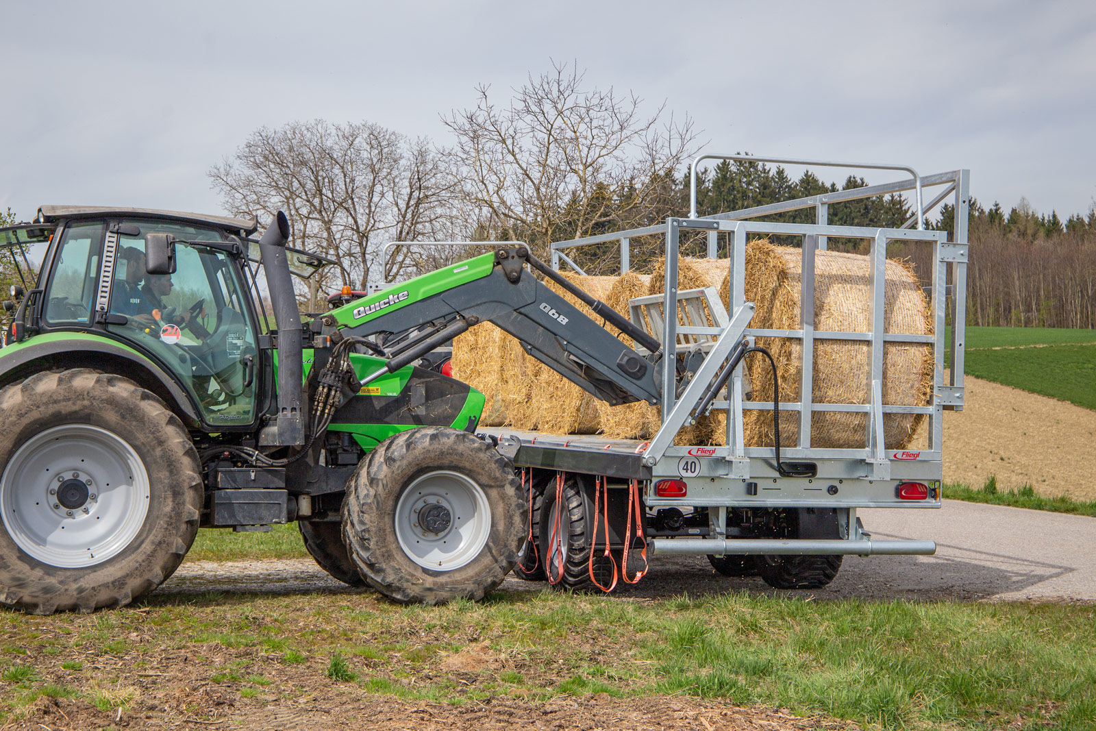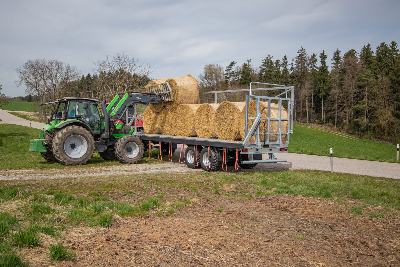Tridem bale transport trailer DPW 210 BL Ultra with load securing and Tandem hook-lift HKL 22